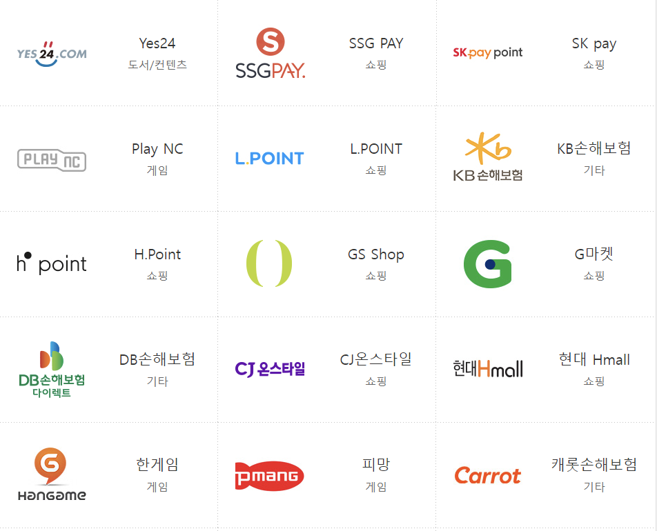 대표적으로 컬쳐랜드의 사용처를 빌려와서 보자면 yes24, ssgpay, skpaypoint 등에서 사용가능합니다.
