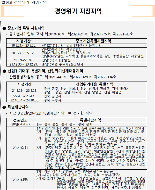 위기대응특별지역, 특별재난지역 소재 소상공인 * [별첨3]참조