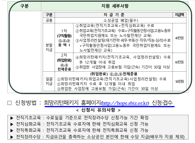 희망리턴패키지 홈페이지 신청 접수 ->(여기)