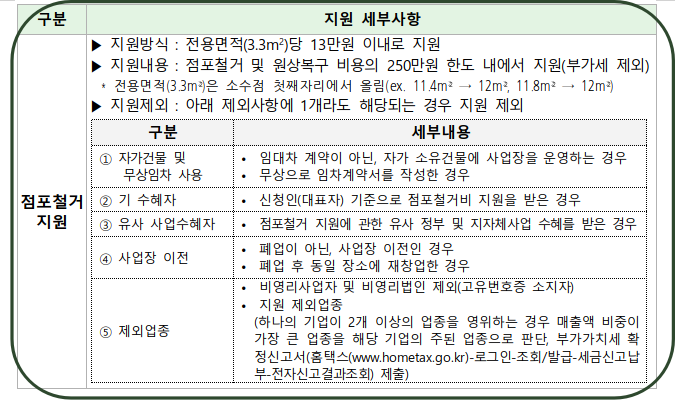 사업정리 컨설팅, 법률자문, 채무조정 신청지원. 점포철거 지원
