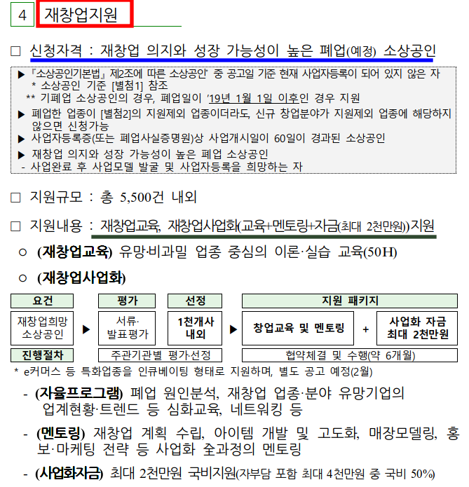 재창업 의지와 성장 가능성이 높은 폐업(예정) 소상공인,사업자 등록증(또는 폐업사실증명원)상 사업개시일이 60일이 경과된 소상공인