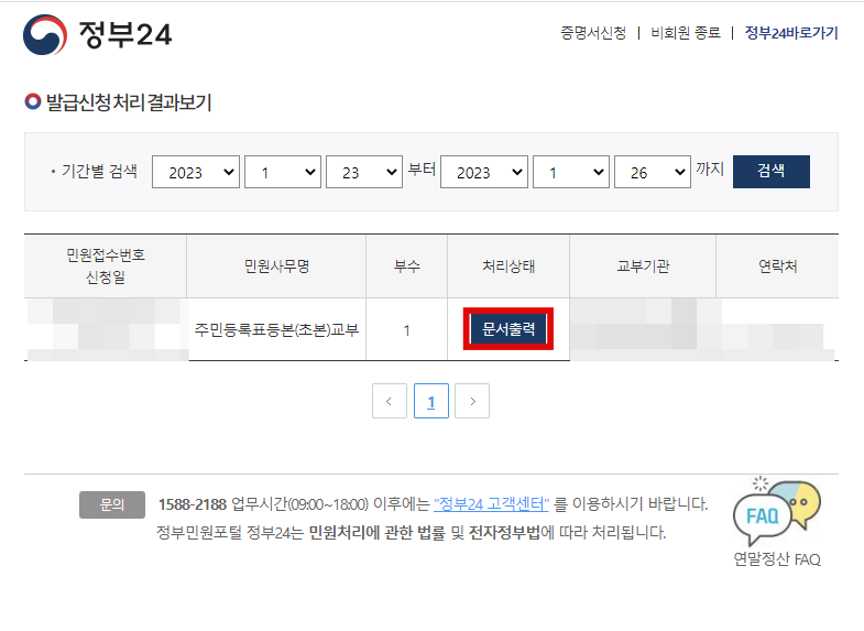 처리완료라는 글씨가 뜨면서 밑에 문서출력이라는 버튼이 생기는데 그걸 클릭하셔서 출력하시거나 pdf로 저장하시면 되겠어요.