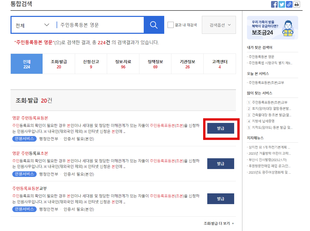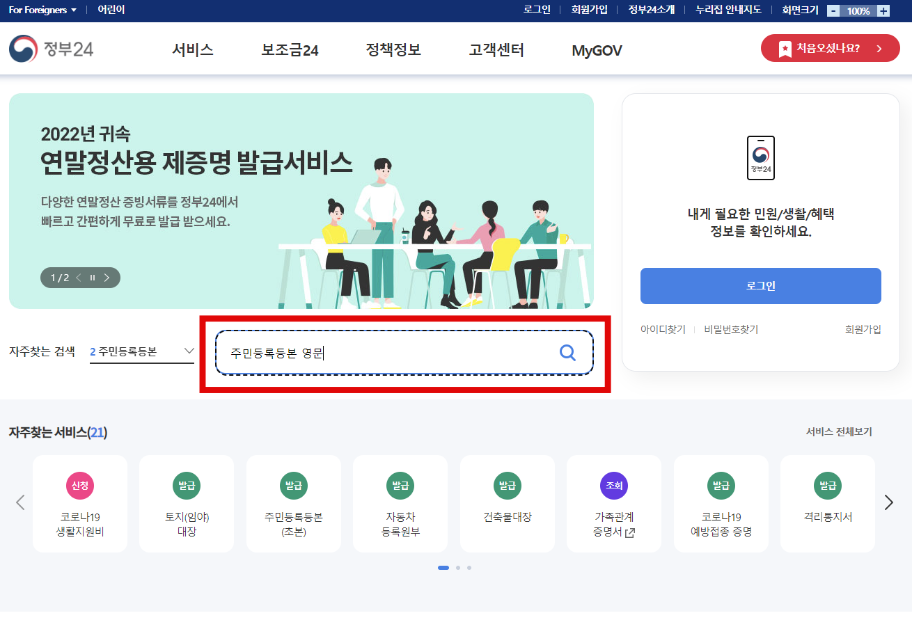 마찬가지로 정부 24홈페이지에서 발급가능한데요.