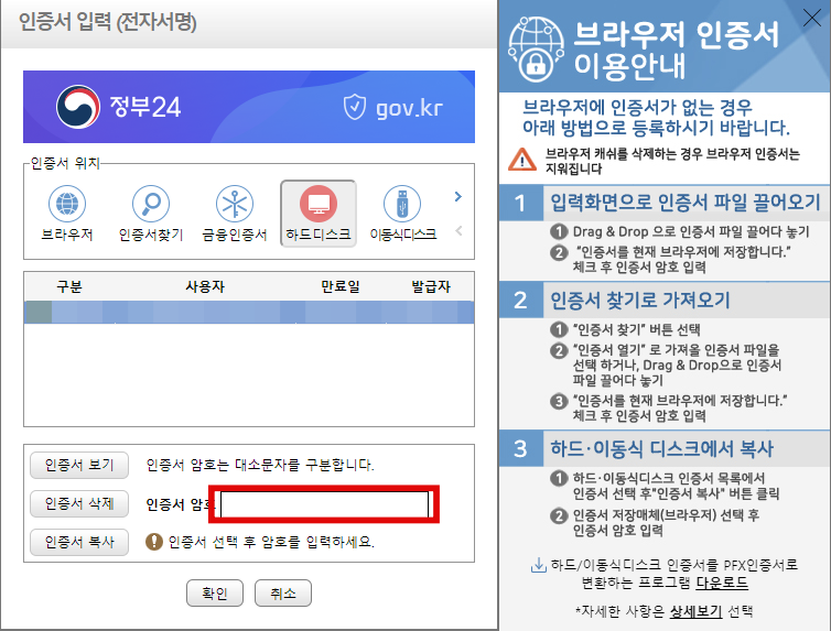 여기서 한번 더 인증을 진행해주시면 출력할 수 있는 창이 나옵니다.