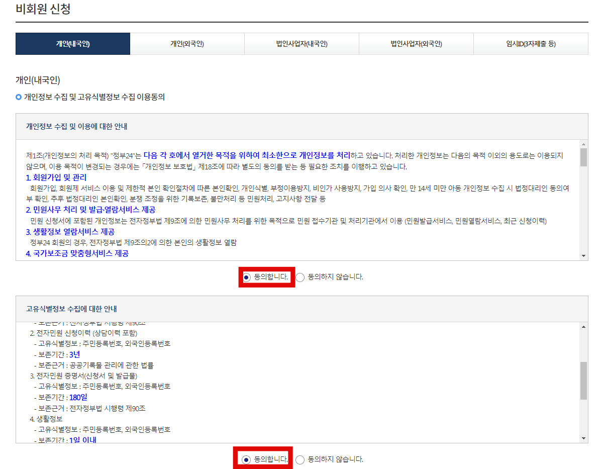 없으시다면 비회원으로 위의 개인정보 수집 및 고유식별정보 수집에 동의 하시고 성명과 주민등록번호 입력하시면 됩니다.